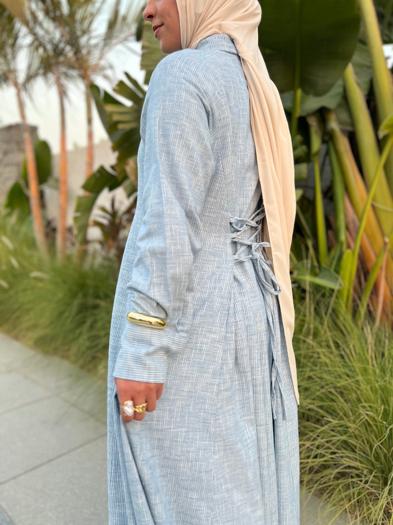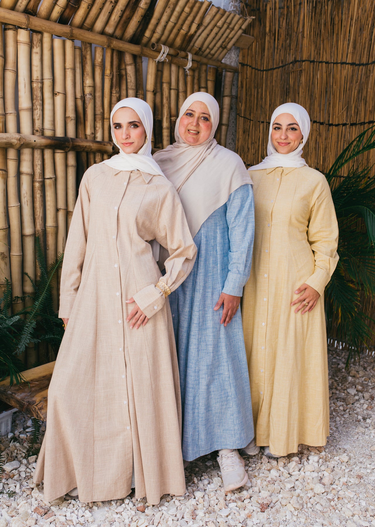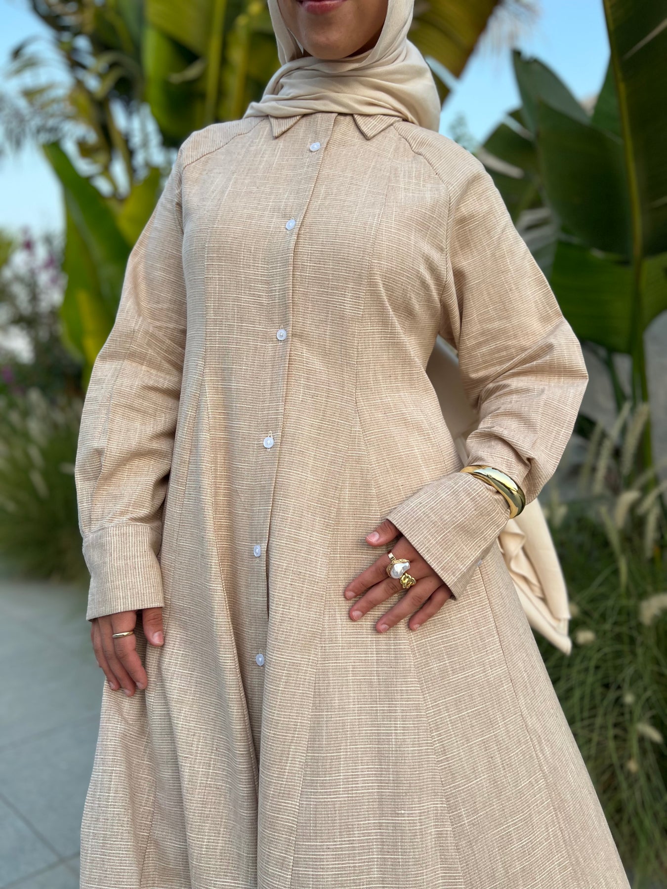 Material : linen الطول ١٤٢ عرض الصدر ٦٢ عرض الهيب ١٠٥